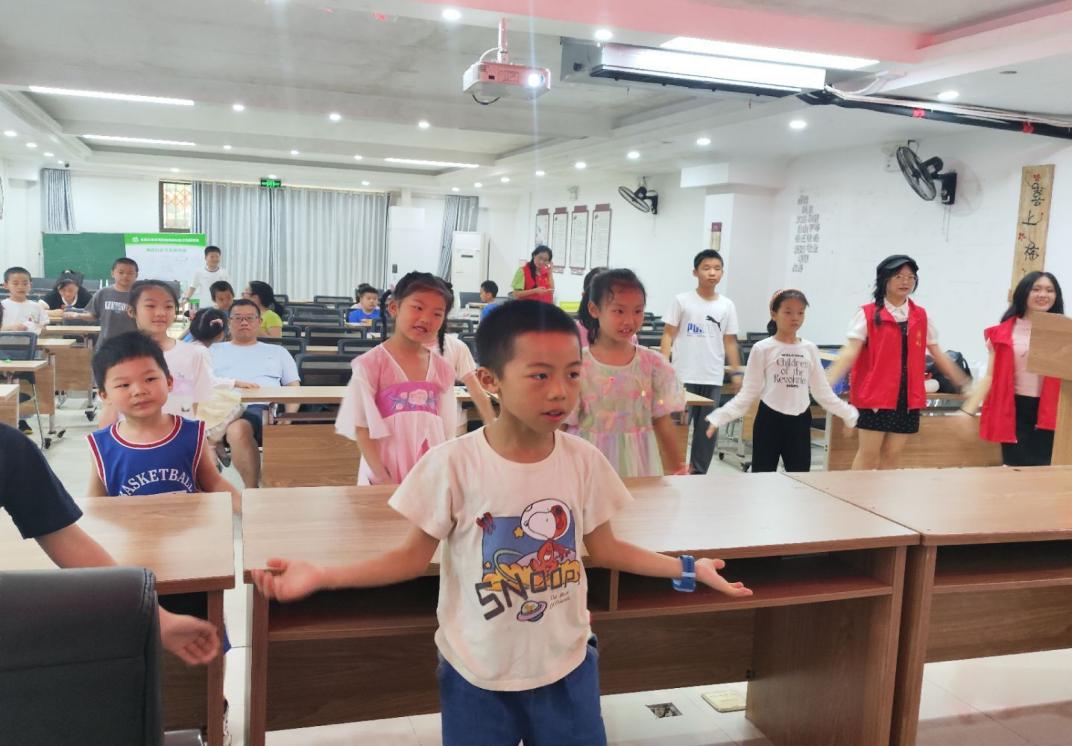 的志愿者们正热闹地上演一出精彩的皮影“大戏”——《三打白骨精》,为梅园社区公共服务中心的小朋友们带来了一场沉浸式的非遗文化传承主题课。