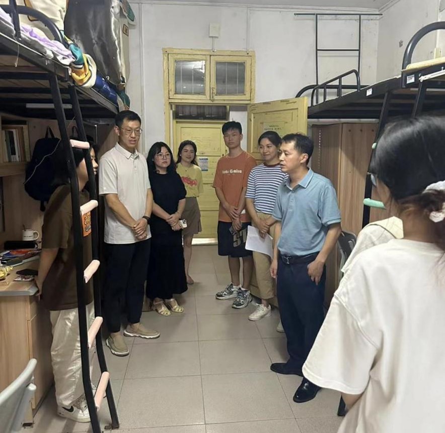 龙院长一行来到学生宿舍,受到了新生们的热烈欢迎。龙院长亲切地询问学生们的入学感受,“来到新的环境,还适应吗?”一句简单的问候,瞬间拉近了师生之间的距离。