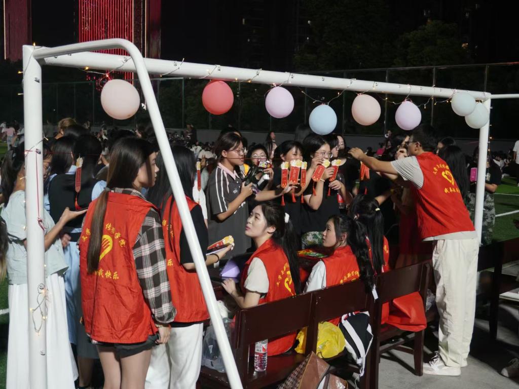 全体新生、教官、朋辈辅导员、志愿者们齐聚操场,共赏圆月、共话诗词。志愿者们以 “月圆人团圆,军训共成长” 为主题,组织开展了“诗词飞花令”“步步生花”“趣味灯谜”等系列活动,为新生们带来了学院的温暖与关怀。
