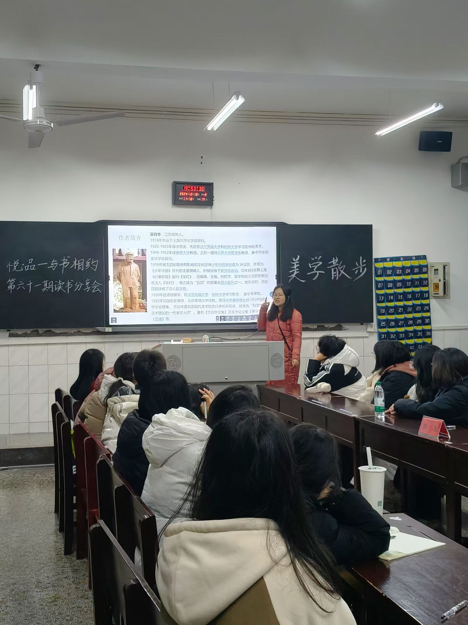 的张惠副院长向同学们推荐了宗白华先生的经典之作——《美学散步》。12月10日晚,怀揣着阅读的收获与感悟,同学们齐聚一堂,与张惠教授面对面,共话《美学散步》的深邃与美妙。