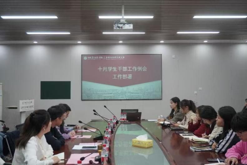 于玉衡楼201会议室举行10月学生干部工作例会暨2023-2024学年优秀学生干部、优秀朋辈辅导员表彰。党委副书记李豪杰,全体辅导员及2023-2024学年、2024-2025学年全体学生干部,2023级新生朋辈辅导员参加会议。