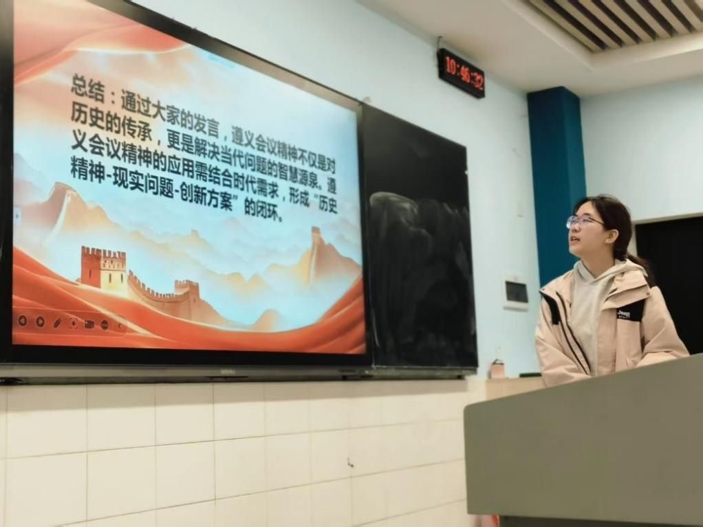 同学们围绕“遵义会议精神在当代社会中的实践”踊跃发言,结合日常学习生活和志愿服务,探讨如何“将红色基因融入志愿服务”“以创新思维活化党史教育”融入实践。通过大家的发言,同学们发现遵义会议精神不仅是对历史的传承,更是解决当代问题的智慧源泉。
