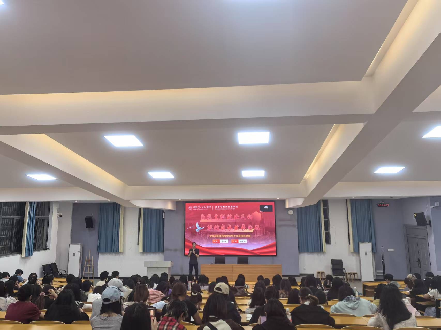 他着重强调,汉语言文学专业学生要稳步提升“听、说、读、写、教、研”核心素养,新闻传播专业学生要全面强化“采、编、播报、摄、创”专业技能,鼓励同学们以扎实的知识储备和专业能力,积极应对升学就业挑战。