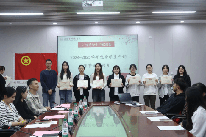2025年优秀学生干部、优秀朋辈辅导员表彰大会在玉衡楼201召开。院党委副书记李豪杰、院学工办全体老师,2024-2025、2025-2026学年全体学生干部及2024-2025学年朋辈辅导员参加会议。