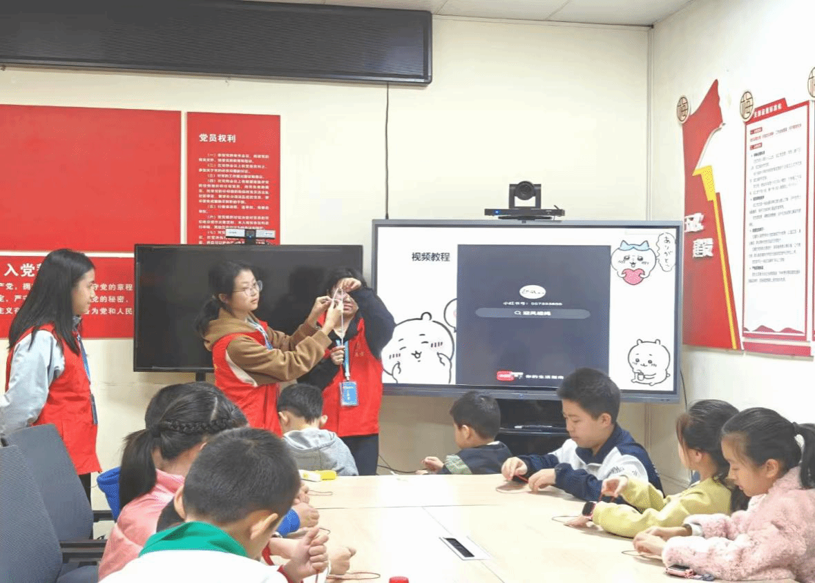 志愿者在梅园社区举办“红魂新传中国结,巧手织梦铸匠心”主题活动,让红色基因与非遗技艺在青少年的亲身体验中,焕发新的生机。