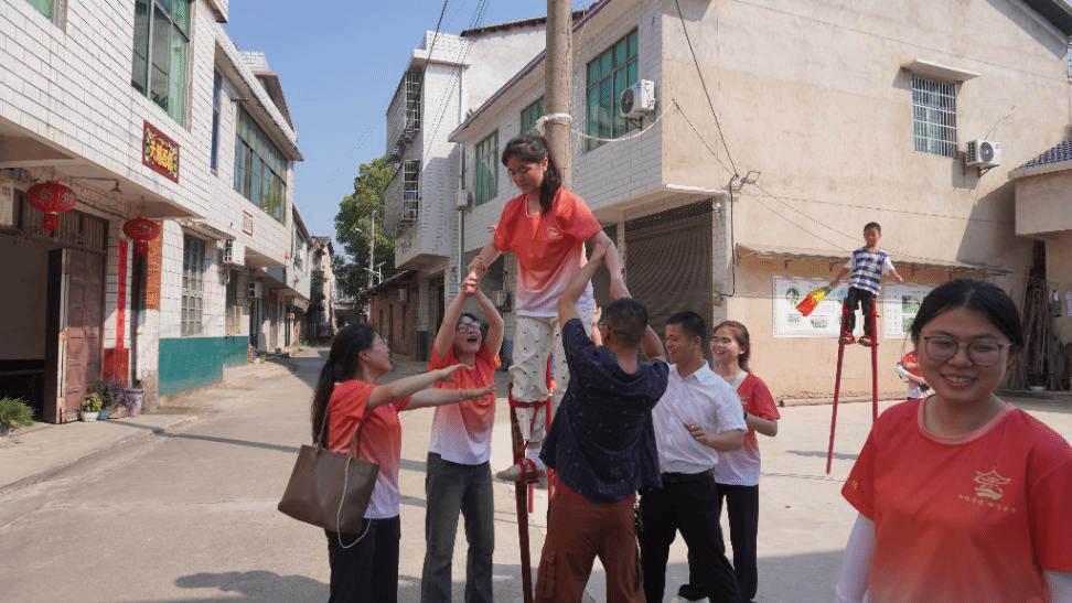 在非遗传承方面,实践团深入湘乡市虞唐镇,实地探访始于元末的湘潭市级非物质文化遗产——虞唐高跷,聆听第四代传承人周景祥讲解“高达四米的文跷”“融合传统戏剧”与“千米竞技”的“高三绝”技艺,切身感受非遗魅力,形成了《漫漫·高跷之上》等纪录片、短视频作品,获得了湘乡市委宣传部、团市委等部门的一致好评。团队还将非遗融入校园课堂,在东台中学、东山学校等校开展非遗文化体验课,围绕漆扇、缠丝绒花、传统剪纸三项传统手工艺,通过历史讲解、工艺展示与动手体验,带领学生近距离触摸传统文化,在亲手制作中播撒文化自信的种子,助力非遗在青春校园中焕发新生。
