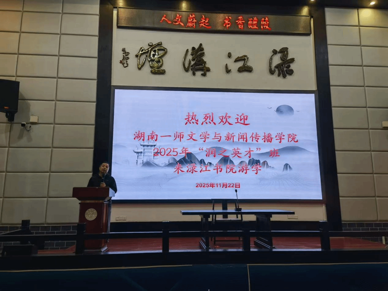 在书院五贤堂,优秀校友、醴陵市教育局局长徐峰结合三十余年的工作经历,分享了母校校风校训如何为他注入超越自我的动力,推动其从中师深造至硕士,促使他虚心向学、科学管理、屡创佳绩;而渌江书院“经世致用,知行合一”的精神则指引他将理念转化为实践,在教育、文旅领域取得亮眼实绩,更形成“教育无处不在”的认知。他勉励学弟学妹们要多读书、勤动笔、深耕课堂,以深入浅出的方式传递知识魅力。龙永干院长带领同学们梳理了书院文脉价值,激励同学们要珍惜时光,把时间变成彩绸;为学不辍,一日格一物;践行校训校风,逐光而行、拔节生长;传播一师精神,担当教育使命。