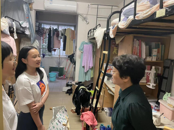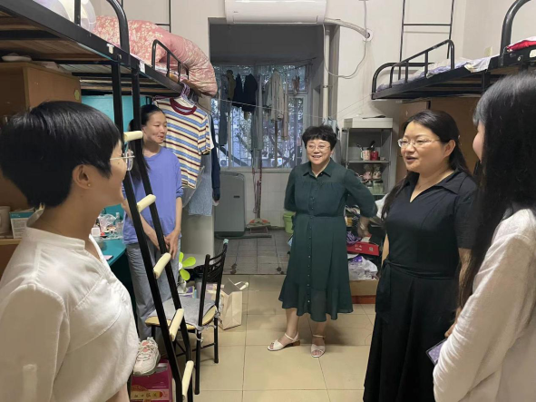 6月14日晚,校党委委员、纪委书记李昱,保卫处副处长伍雁鹏,脱裤吧 副院长王霞,学生工作处苏郁清老师,脱裤吧 学工办主任唐科,辅导员熊薇、曾志远、刘晨晨、安炜成走访了学生公寓。李昱书记亲切地关心了毕业班学生的离校准备以及就业情况,随后前往图书馆查看学生自习情况。李书记亲切关怀了学生的学习生活,同时了解关心图书馆自动报警系统工作原理并亲自示范检测系统的工作情况。最后李昱书记一行前往玉衡楼自习教室关心学生们的自习情况,叮嘱同学们集中精力备考,争取在期末考试中取得优异成绩。