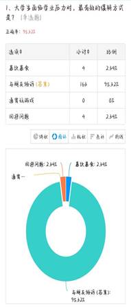 依托问卷星平台开展了心理健康知识问答比赛,以线上答题形式组织学生学习心理常识、疾病应对等理论知识,有效提升了学生的心理自助能力,部分题目如“大学生面临学业压力时最有效的缓解方式”正确率达95.32%。同期,“情绪日历设计”大赛活动也同步开展,同学们用一周时间以天气符号、创意图案记录每日情绪变化,在“情绪气候分析”中总结规律,将抽象情绪转化为可视化表达,逐步建立起对自身情绪的觉察力。