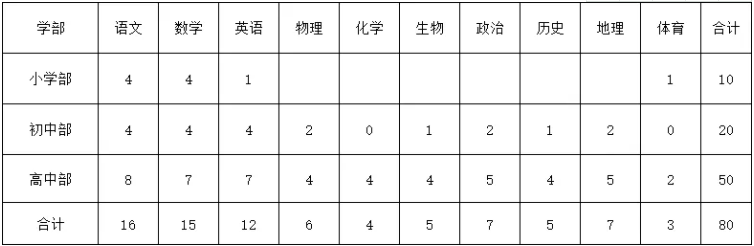 2021-2022学年度面向社会公开招聘小学、初中和高中各学科教师,详见下表: