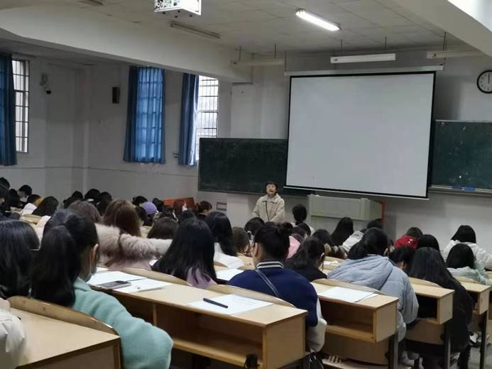 在玉衡南101举行2021届毕业生年级大会。学工办主任唐科、就业专干刘晨晨老师出席会议,2021届全体非定向毕业生近200人参加了本次会议。