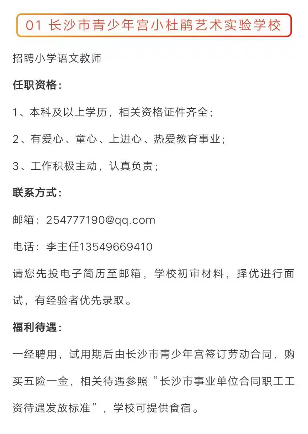 长沙市青少年宫小杜鹃艺术实验学校招聘小学语文教师