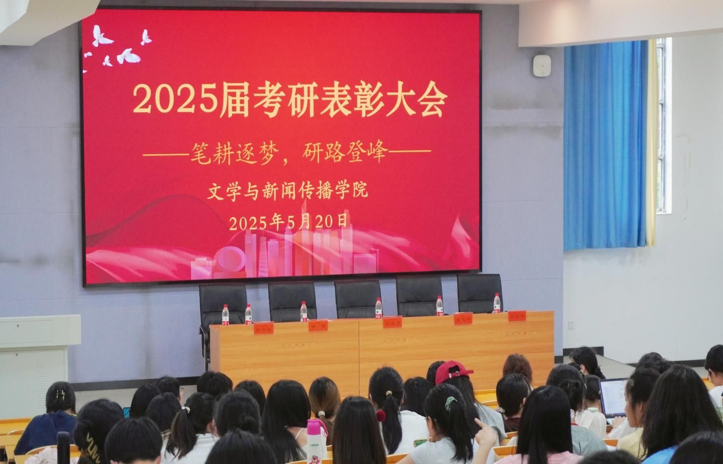 在玉衡南101报告厅举办2025届毕业生考研总结表彰大会暨2026届考研动员大会。院党委书记刘立勇,院长龙永干,副院长杨水远,汉语国际教育系主任孙雅平,学工办辅导员以及2022级考研学生参会,会议由院党委副书记李豪杰主持。