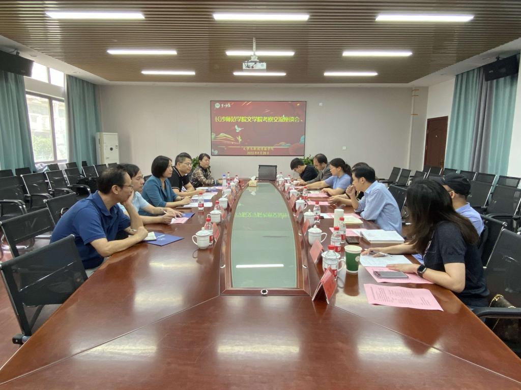 党委书记陈天涯代表学院热烈欢迎长沙师范学院文学院钟巧灵院长一行。随后,龙永干院长向来访教师介绍了脱裤吧