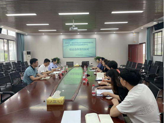签署校企合作协议。学院党委陈天涯书记、欧阳范剑副书记、王霞副院长、罗燕副院长、广播电视系主任谢杰、网络与新媒体系主任杨清华、学工办主任唐科、就业专干曾志远参加了本次会议,会议由党委书记陈天涯主持。