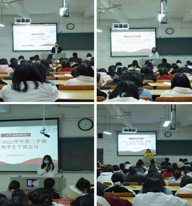 随后,分团委副书记彭海英和学生会执行主席赵芝就寒假工作、新学期活动及常规工作进行总结和汇报,并提出具体要求,希望全体学生干部端正思想,有担当、勇担当、敢担当,勠力同心,砥砺前行。学生干部代表宿管部部长易雅婷、纪检部部长周宏胜相继发言,针对各自部门的重点工作进行了强调,为今后工作高质量、高效率地开展奠定了良好的基础。