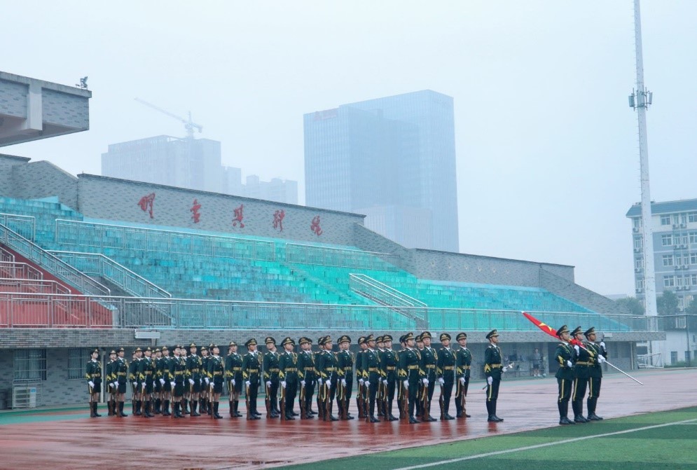 在田径场隆重举行升旗仪式。学院党委书记陈天涯、党委副书记欧阳范剑、学工办全体专兼职辅导员及近千名学生参与本次仪式。仪式由欧阳副书记主持。