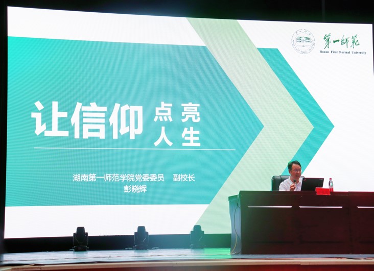 2021级646名新生讲授以“让信仰点亮人生”为主题的开学第一课。脱裤吧