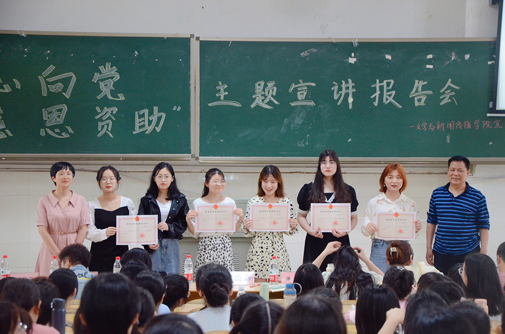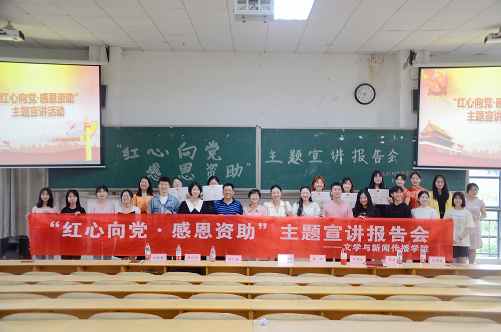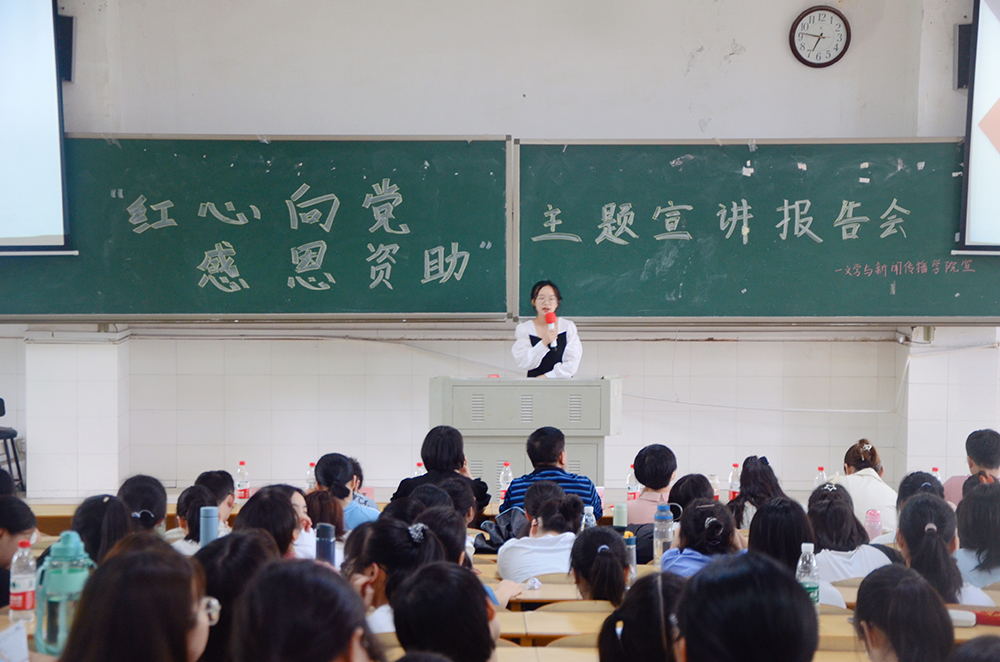 特此于玉衡南201开展“红心向党·感恩资助”主题宣讲报告会。学院党总支副书记欧阳范剑、学工办主任唐科、全体辅导员老师及学生代表300余人参加本次报告会。