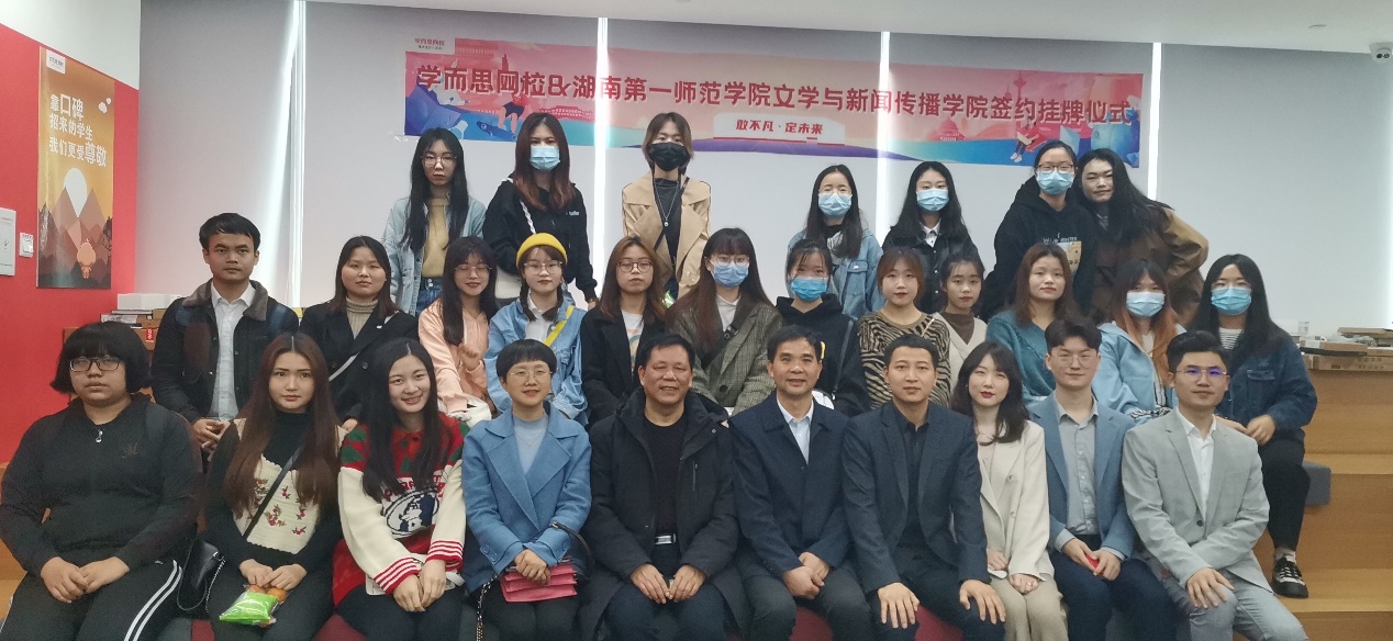 受学而思网校邀请,前往IFS国金中心学而思行政楼参观并举行实习就业基地挂牌仪式,院党总支书记佘向军、党总支副书记欧阳范剑、学工办主任唐科、就业专干刘晨晨、学而思网校湖南校企负责人刘坤、学而思主管伍映函、一师招聘负责人殷博文及脱裤吧