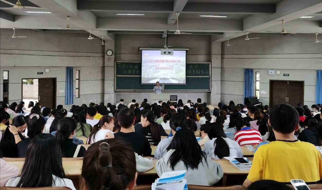 召开全体在校班级干部校园安全动员大会。学院党总支书记佘向军、院长龙永干、党总支副书记欧阳范剑、学工办主任唐科、全体辅导员老师及各班级在校学生干部参加了会议。