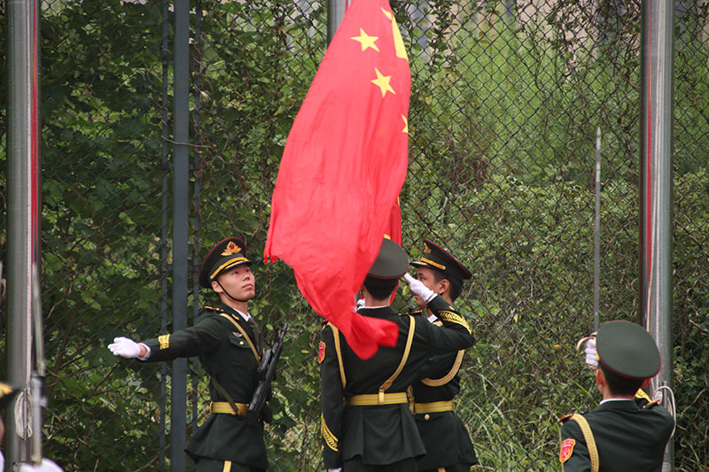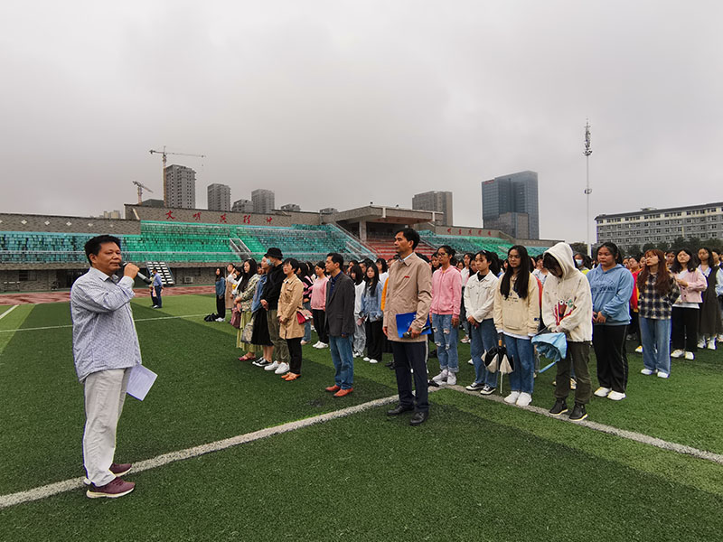 在田径场举行升旗仪式。学院党总支书记佘向军、院长龙永干、党总支副书记欧阳范剑、学工办主任唐科、辅导员以及2020级初招班学生和2019级高招班学生参加了升旗仪式。升旗仪式由党总支副书记欧阳范剑主持。