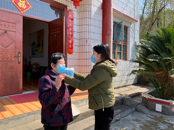 陈亭延给村民讲解正确戴口罩的方法