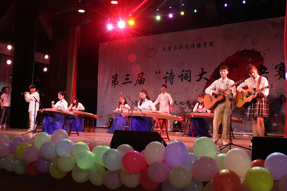 第三届“诗词大会”决赛在特立楼实验剧场举行。学生规划处处长刘澍心、院长龙永干、党总支书记余向军、党总支副书记欧阳范剑、副院长邓姿、教务办主任李希光、学工办唐科主任以及全体辅导员出席本次决赛。文学教研室刘汾、周华南、李柳情、彭利辉担任评委老师。