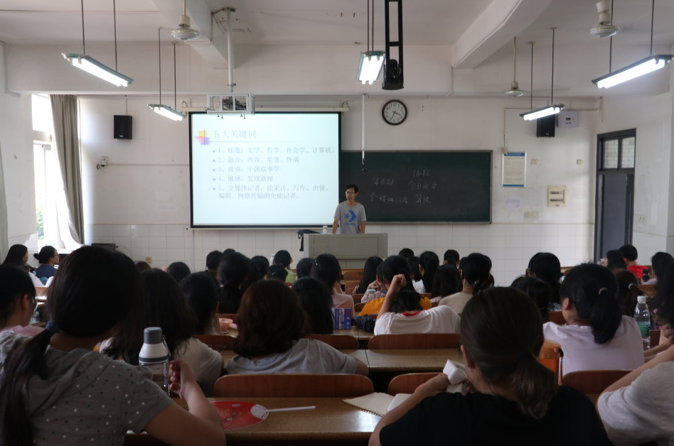 在怀中南209、201教室分别为汉语言文学、广播电视学、网络与新媒体专业新生举办了一场有关专业介绍和学习方法指导的讲座。院长龙永干教授、罗卫光老师担任主讲人。