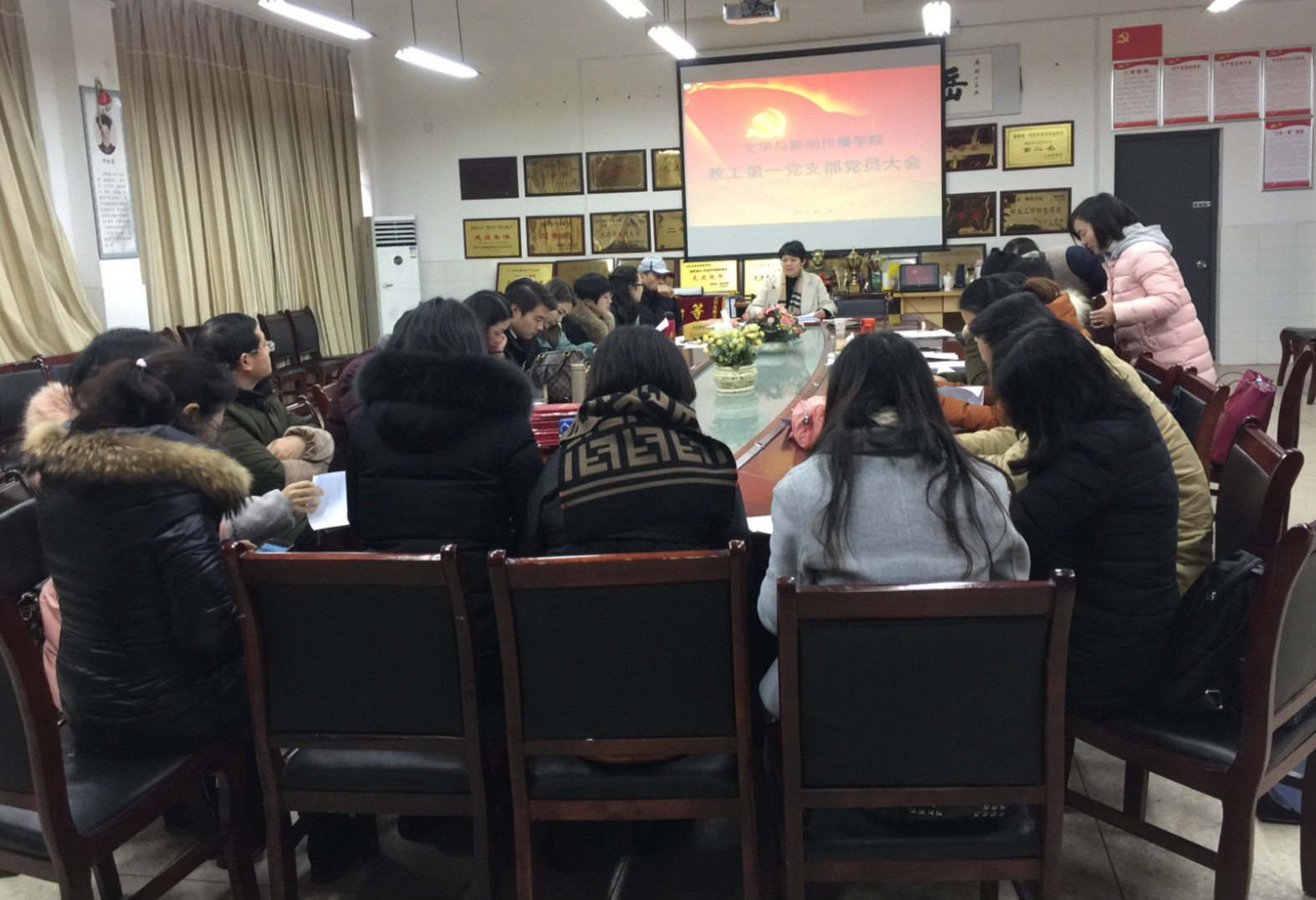 教师一支部学院党员大会于玉衡楼201顺利召开。院总书记刘澍心老师,第一党支部书记周海彬,以及会议主持罗燕老师等出席了本次会议。