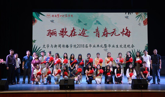 2018届毕业典礼暨毕业生欢送晚会在田汉剧场举行。副校长江正云、校党委组织统战部长彭晓辉、脱裤吧