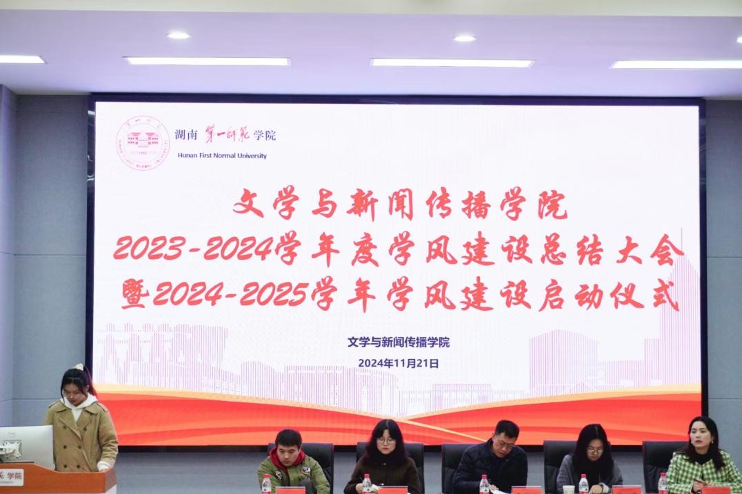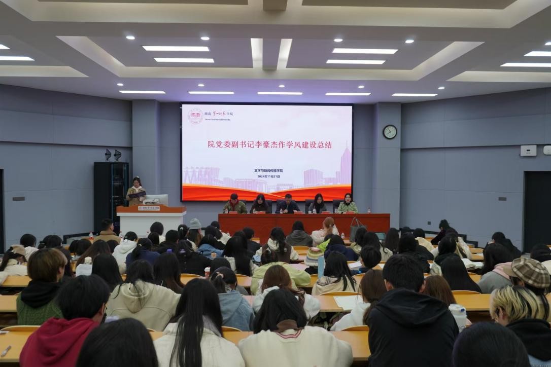 2023-2024学年度学风建设总结大会暨2024-2025学年学风建设启动仪式在润寰南105顺利召开。院党委副书记李豪杰、副院长张惠、学工办全体辅导员、2024级各班班主任出席会议,学院主席团、学习部、纪检部、秘书部学生干部,22、23、24级学生代表共计200余名同学参加会议。