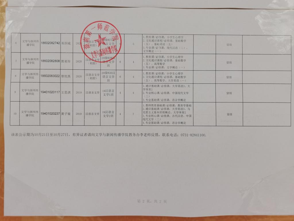 脱裤吧 2021年下学期学籍清查结果如下,该结果公示7天,有异议者请向学院教务办李老师反馈,联系电话:0731-82841100