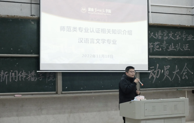 于11月18日在怀中南110召开汉语言文学专业认证专家进校考查学生动员大会,院党委书记何培森、教科办主任谌鸽、全体辅导员、2020—2022级汉语言文学专业学生参加会议,会议由学工办主任唐科主持。