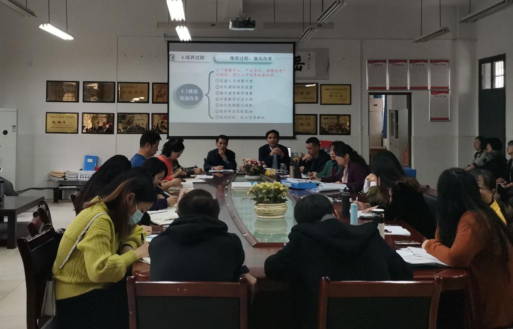 在玉衡楼201会议室召开迎评促建工作研讨会。学院党总支书记佘向军、院长龙永干、党总支副书记欧阳范剑、副院长邓姿、葛春蕃以及各教研室主任、教师代表参加了会议。