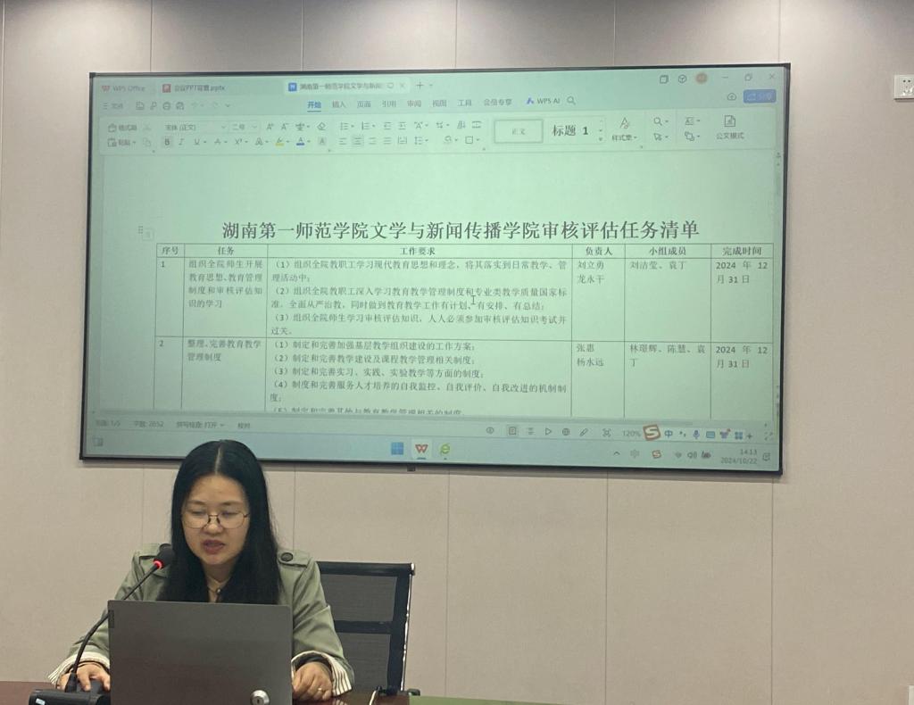 副院长张惠首先对教育部《普通高等学校本科教育教学审核评估实施方案(2021—2025 年)》文件进行宣读,重点传达了本次评估工作的指导思想,要求学院以评促建、以评促改、以评促管、以评促强,建立健全本科教育教学质量保障体系,引导学院内涵发展、特色发展、创新发展,培养德智体美劳全面发展的社会主义建设者和接班人。张惠制定了迎评前具体工作任务时间表,宣读了《脱裤吧