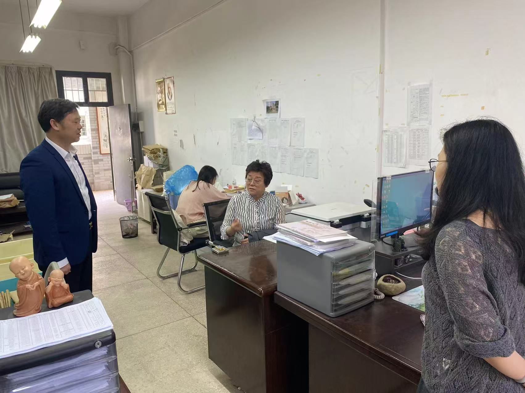 检查指导本科教育教学审核评估准备工作。学院党委书记刘立勇、副院长张惠、教科办陈慧等人全程陪同。