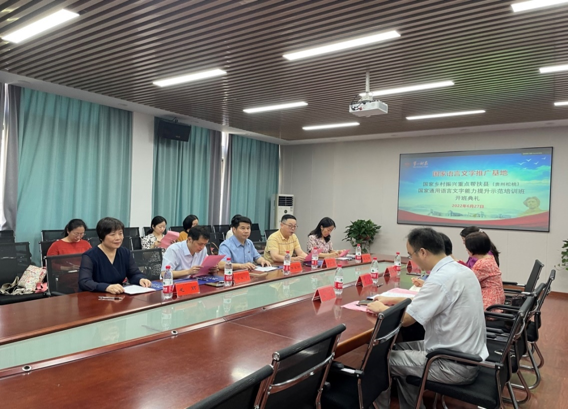 国家语言文字推广基地对口贵州松桃苗族自治县国家通用语言文字能力提升示范培训班开班典礼在玉衡楼201研讨室隆重举行。脱裤吧